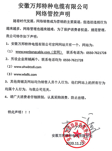 鄭重聲明:安徽萬邦特種電纜有限公司官方網站為:www_wanbangcable_com.aliveaa.cn,除此之外無任何子網站或合作網站,其余均為假冒偽劣。電話:0550-7621728 13485756353 地 址:安徽省天長市滁州高新技術產業開發區經四路29號
